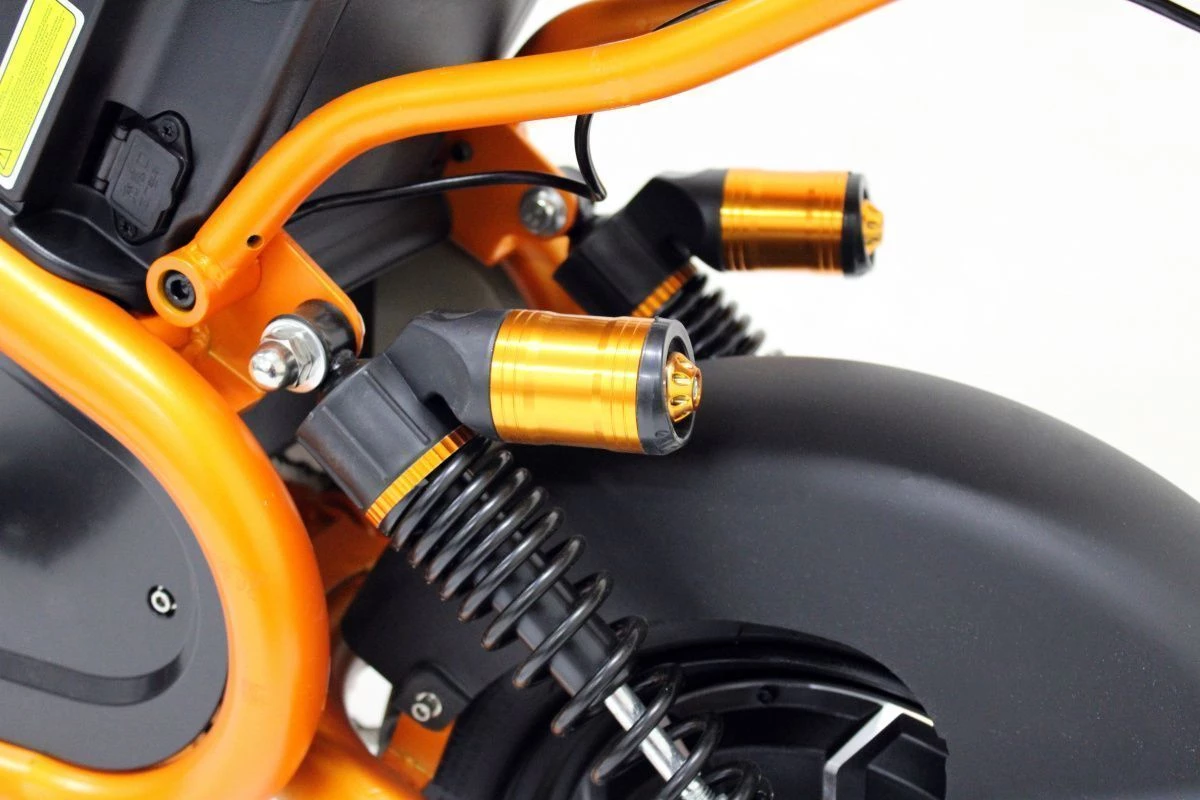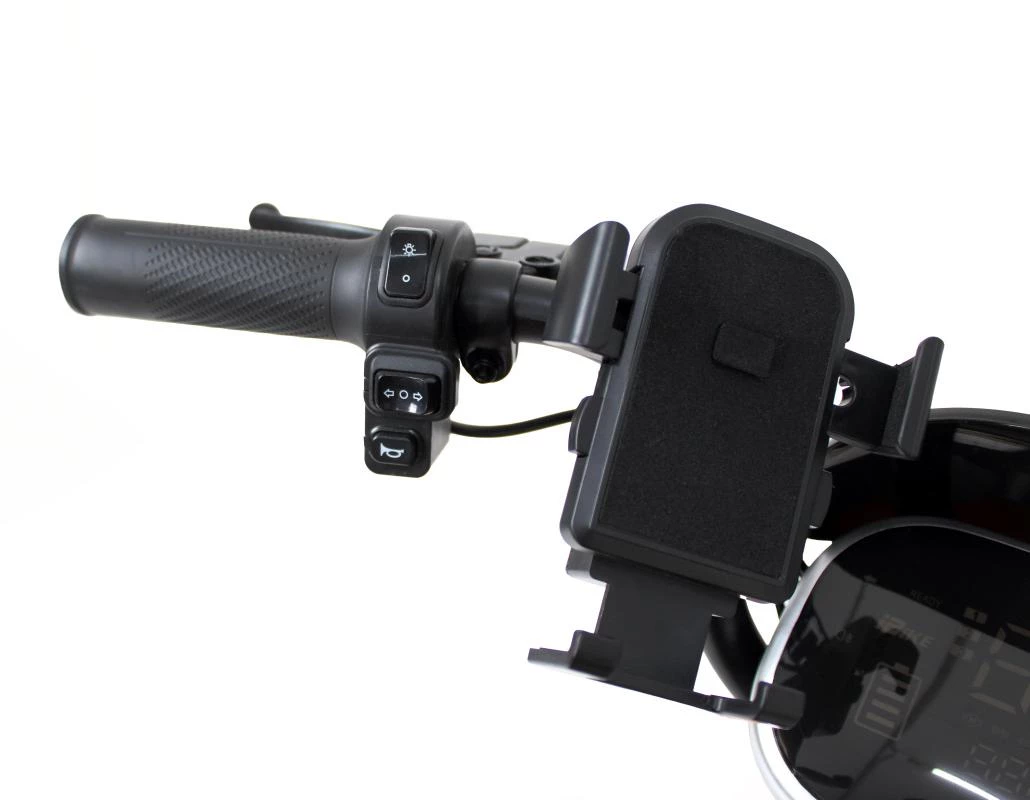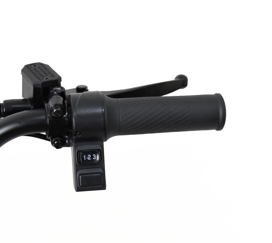 Электроскутер оснащен гидравлическими тормозами, которые обеспечивают надежное и эффективное торможение, что особенно важно в условиях городского движения. Гидравлическая система торможения гарантирует, что вы сможете остановиться быстро и безопасно в любых условиях.