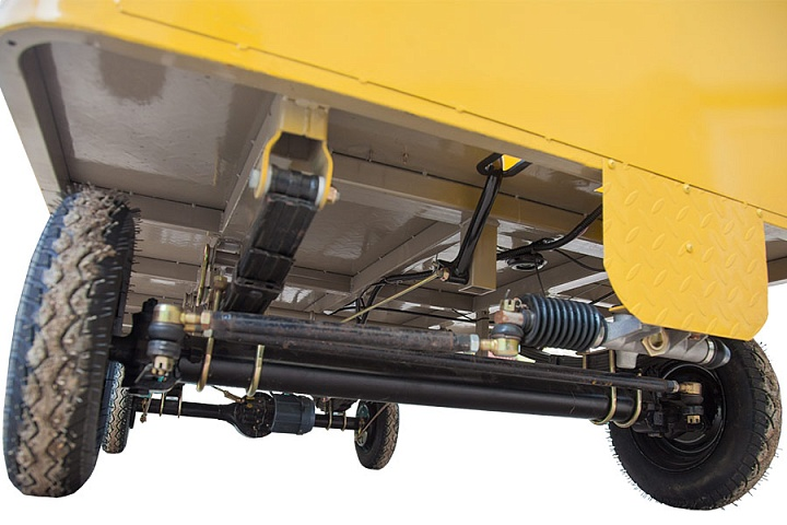 Габариты тележки составляют 2500×1200×1200 мм, а её сухой вес — 210 кг, что делает её достаточно компактной для маневрирования в ограниченных пространствах. Колеса размером 3.25-8 обеспечивают хорошую проходимость, что позволяет использовать тележку на различных типах поверхностей.