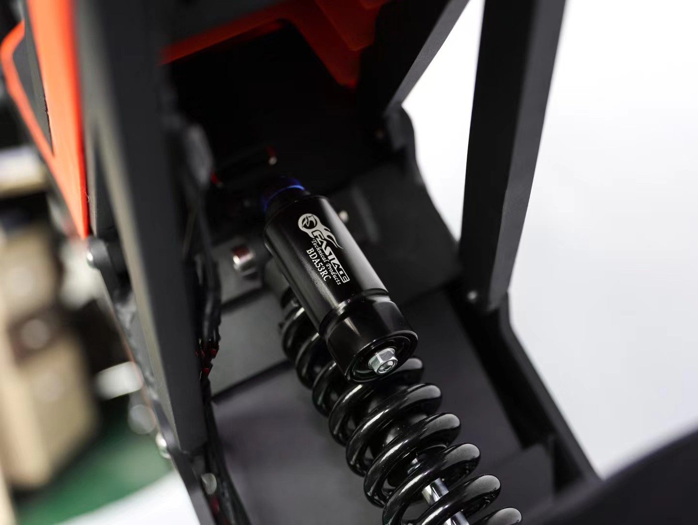 Kugoo ES оборудован передними и задними амортизаторами, что делает поездку более плавной и комфортной, даже на неровных участках. Эти амортизаторы эффективно гасят вибрации и удары, обеспечивая максимальный комфорт во время езды.