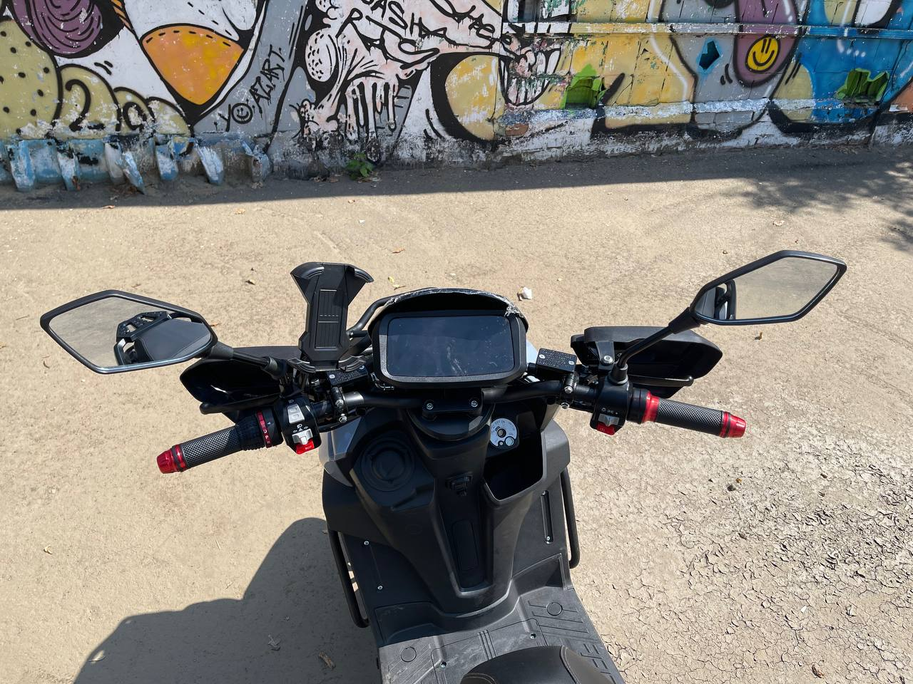 Скутер оборудован дисковыми гидравлическими тормозами, обеспечивающими надежную остановку. Приборная панель включает стильный электронный спидометр с LCD-дисплеем, где все показания легко читаются даже на высокой скорости.