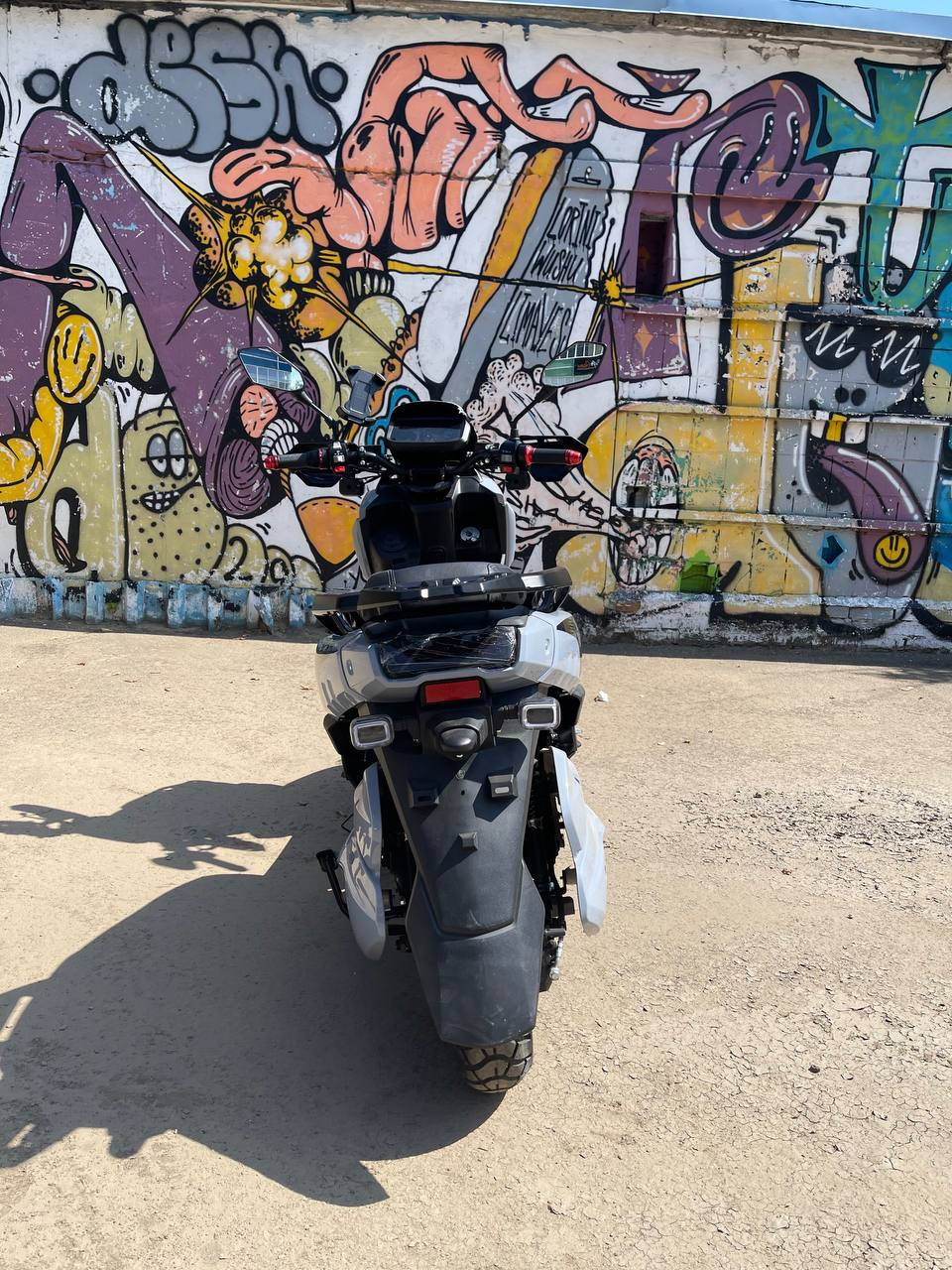 Задняя часть также защищена алюминиевыми дугами, что сохраняет скутер в отличном состоянии даже при падениях или случайных ударах, особенно полезно для загородных поездок по неровным трассам.