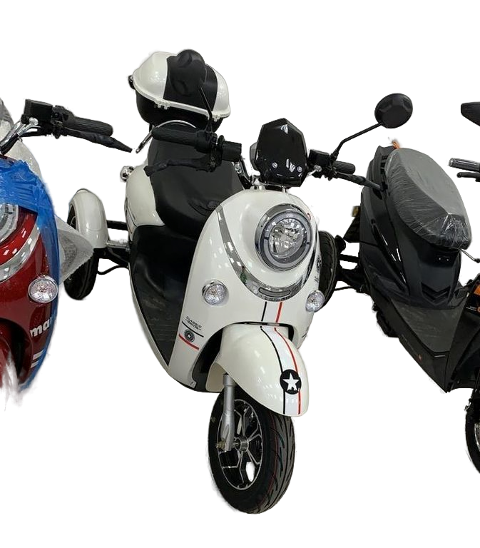 - Благодаря трем широким колесам электроскутер стал еще более проходимым, устойчивей и надежней.