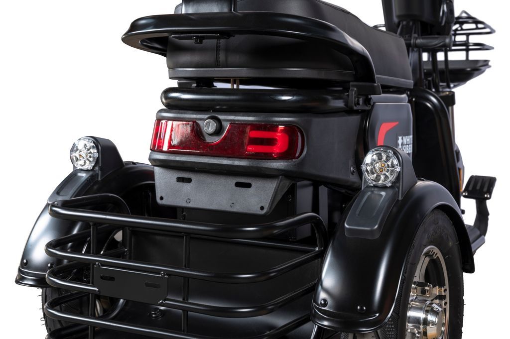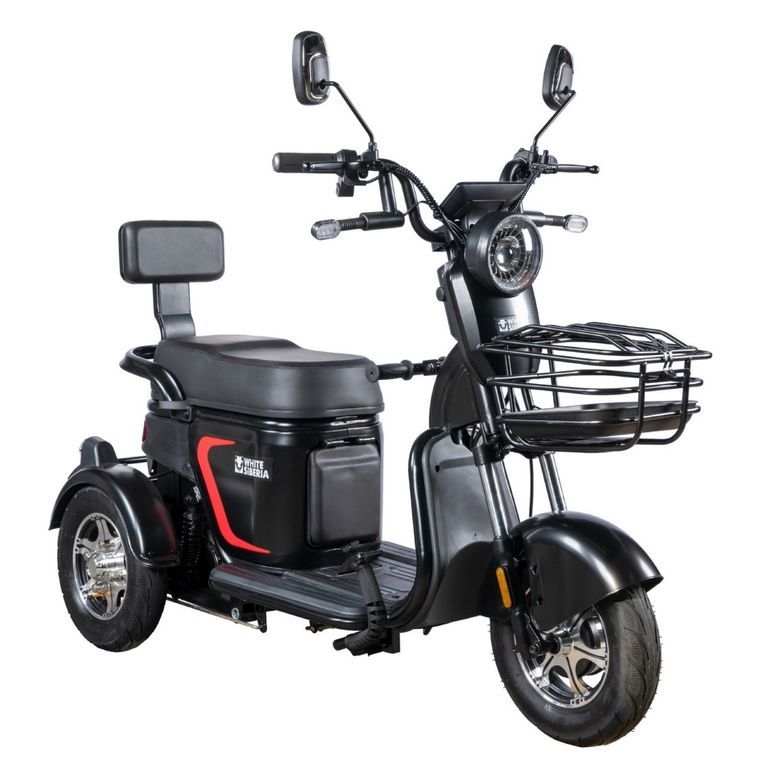 WHITE SIBERIA SIBTRIKE L 2000W удобный электрический трицикл с большим райдерским сиденьем и откидным детским. Удобство, относительная компактность и функциональность - новая модель трицикла от WHITE SIBERIA предлагает новый дизайн и удобное управление с комфортной посадкой при довольно компактных габаритах. WHITE SIBERIA SIBTRIKE L 2000W - прекрасное универсальное транспортное средство! Сзади имеется вместительная кузовная корзина, тем самым превращая пассажирский электроскутер в универсальный аппарат, которому всегда найдётся работа в хозяйстве!