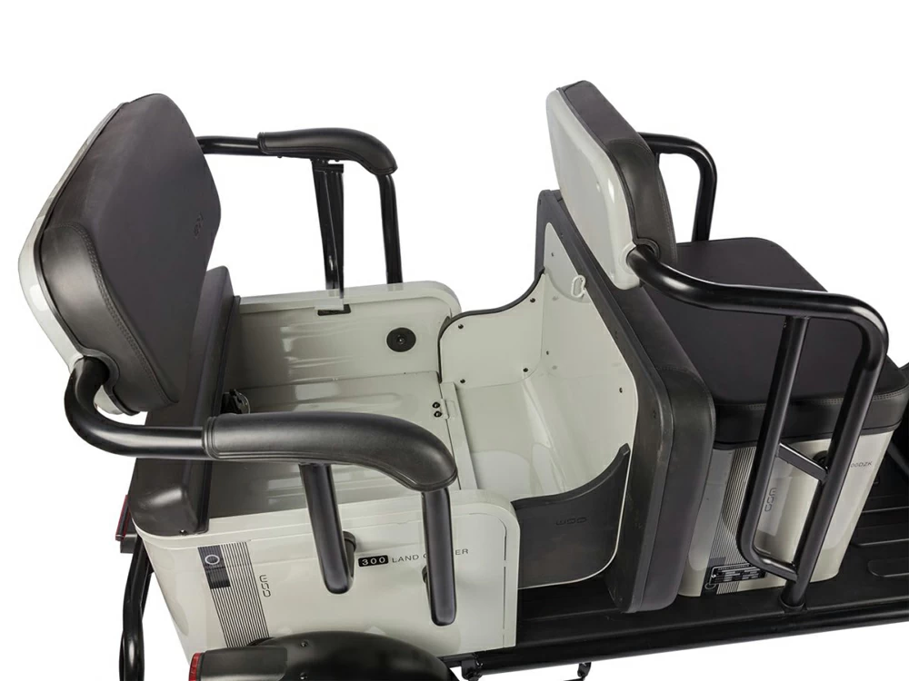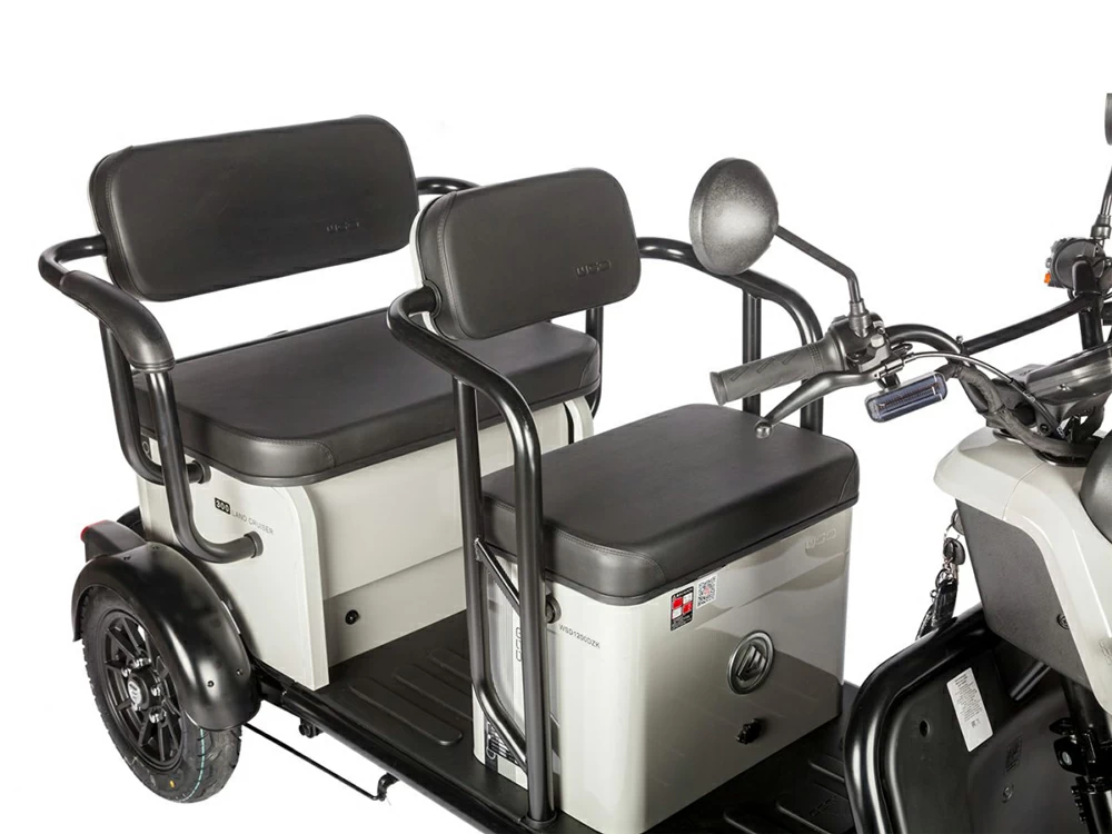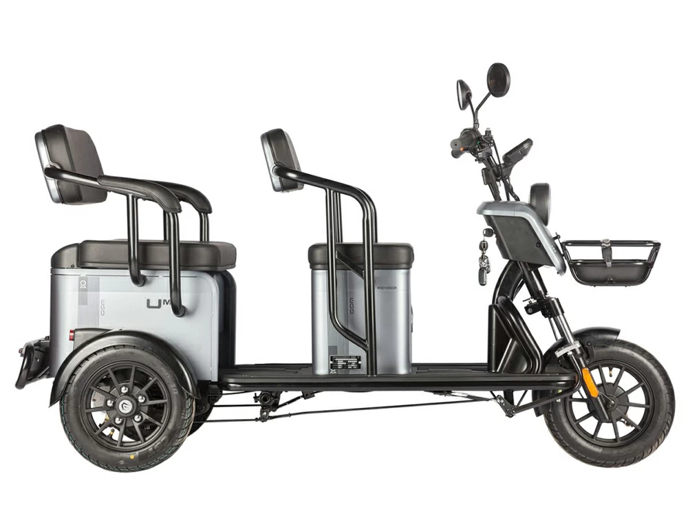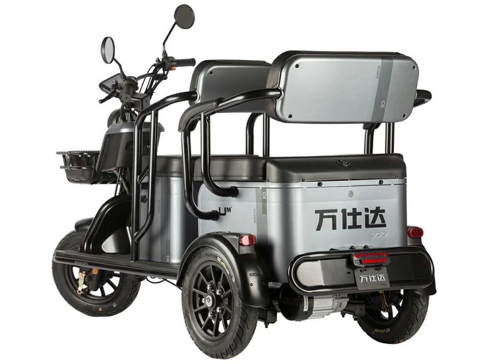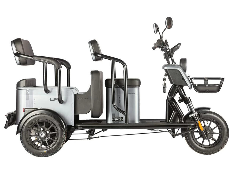 Wanshida UM+ предлагает множество удобных функций, включая багажник сзади и под сиденьем для перевозки личных вещей. В комплект входят зарядное устройство для аккумулятора и инструкция по эксплуатации, что позволяет быстро освоить управление трициклом.