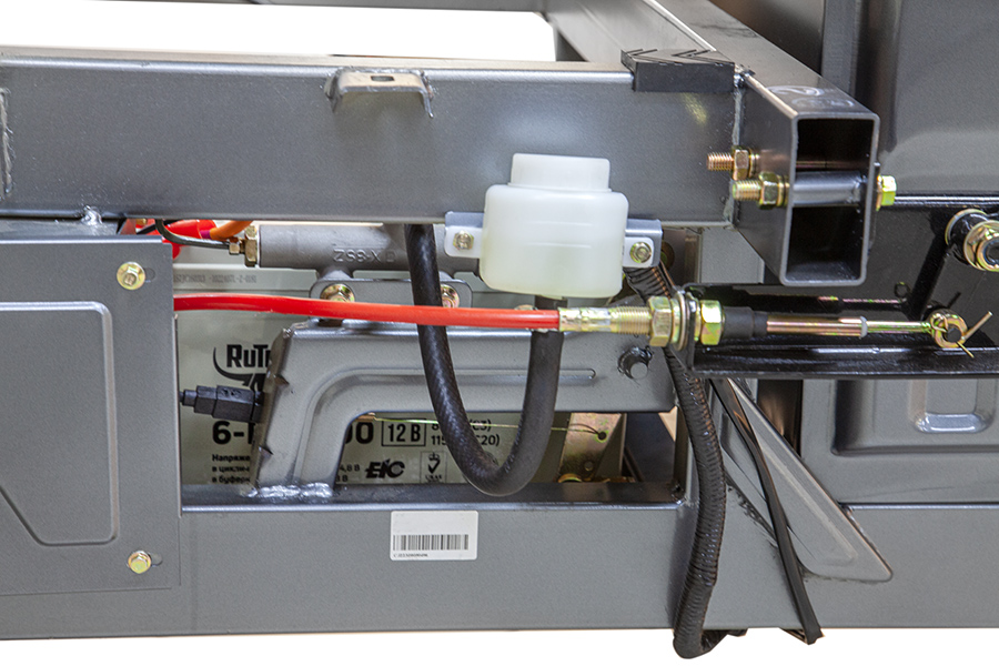 Тормозная система трицикла включает барабанные тормоза спереди и гидравлический ножной тормоз сзади, что обеспечивает надежное и безопасное торможение. Это особенно важно при перевозке тяжелых грузов, когда контроль над движением становится критически важным.