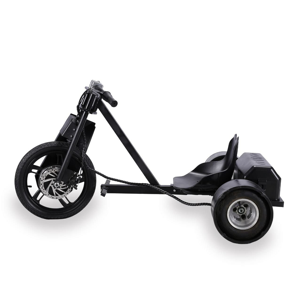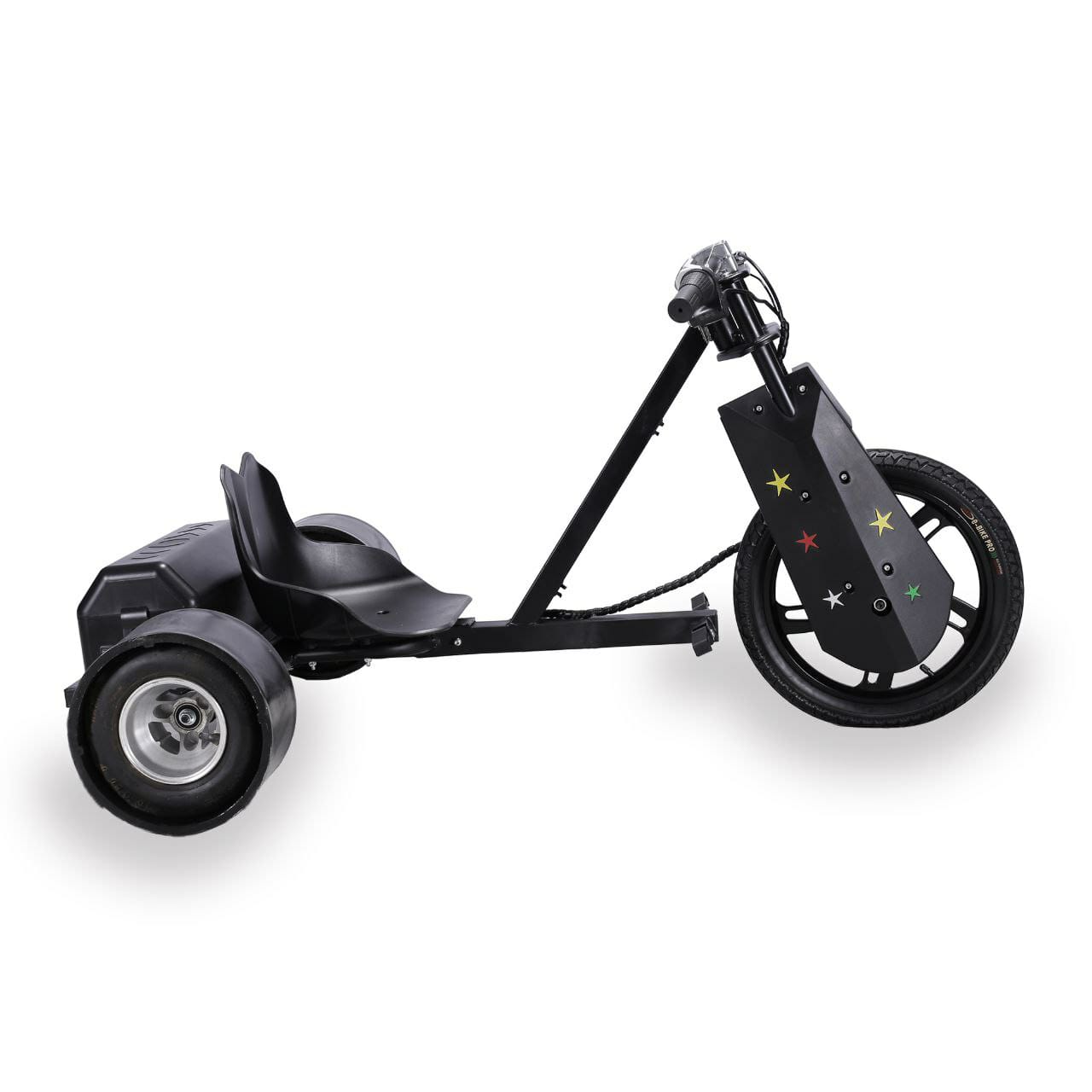 Drift Cart Trike PRO оборудован тремя колесами, что повышает стабильность и безопасность на дороге.