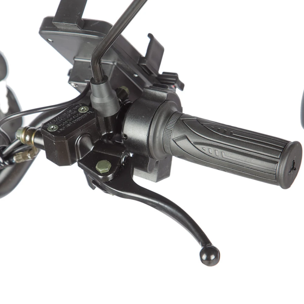 Электровелосипед оборудован передним барабанным тормозом и задним дисковым гидравлическим тормозом, что обеспечивает надежное и быстрое торможение. Эта комбинация гарантирует безопасность при любых условиях движения, позволяя уверенно контролировать скорость.
