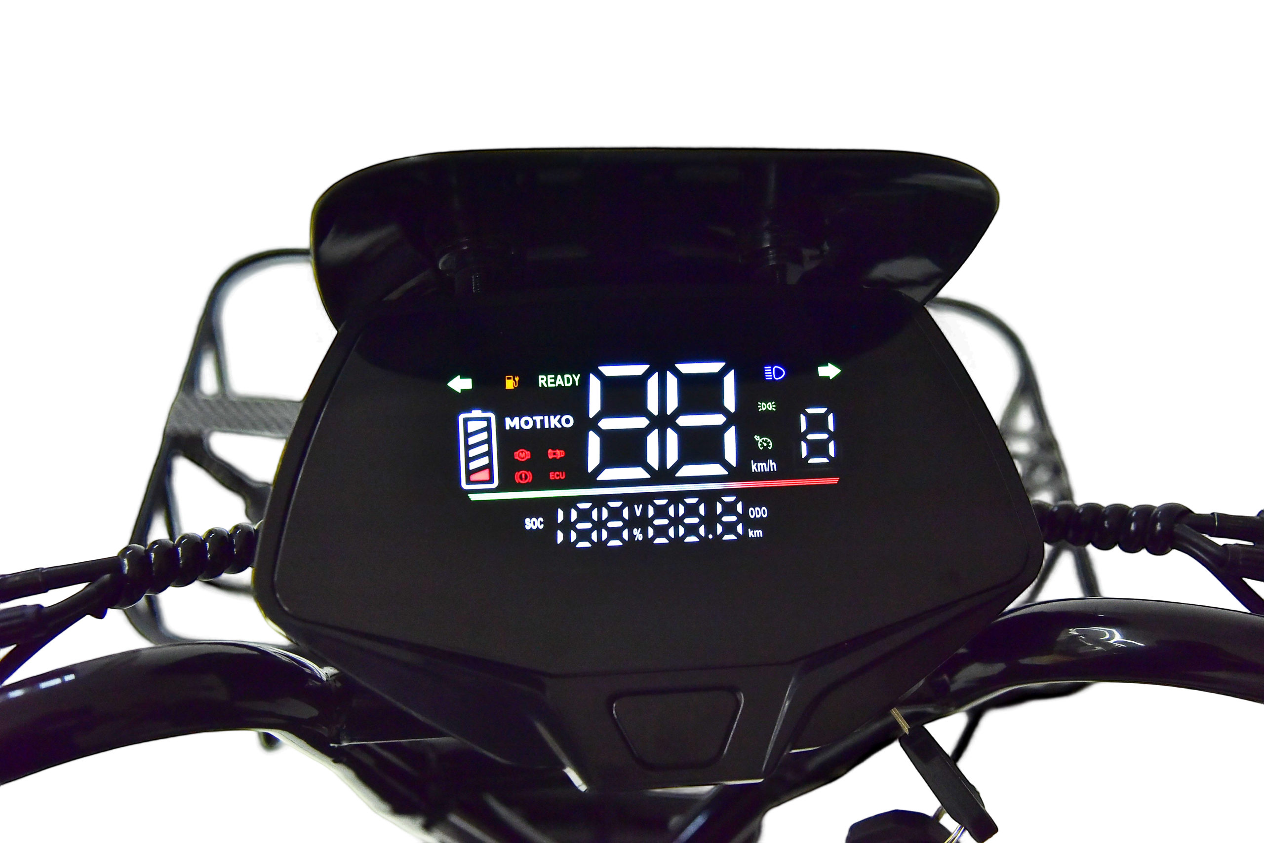 Цифровая приборная панель отображает скорость, уровень заряда, пройденное расстояние и другую информацию. Дисковые тормоза с роторами 160 мм на переднем и заднем колесе обеспечивают эффективное и предсказуемое замедление в любых погодных условиях. Все органы управления расположены эргономично и доступны без изменения хвата, что особенно важно при активной езде.