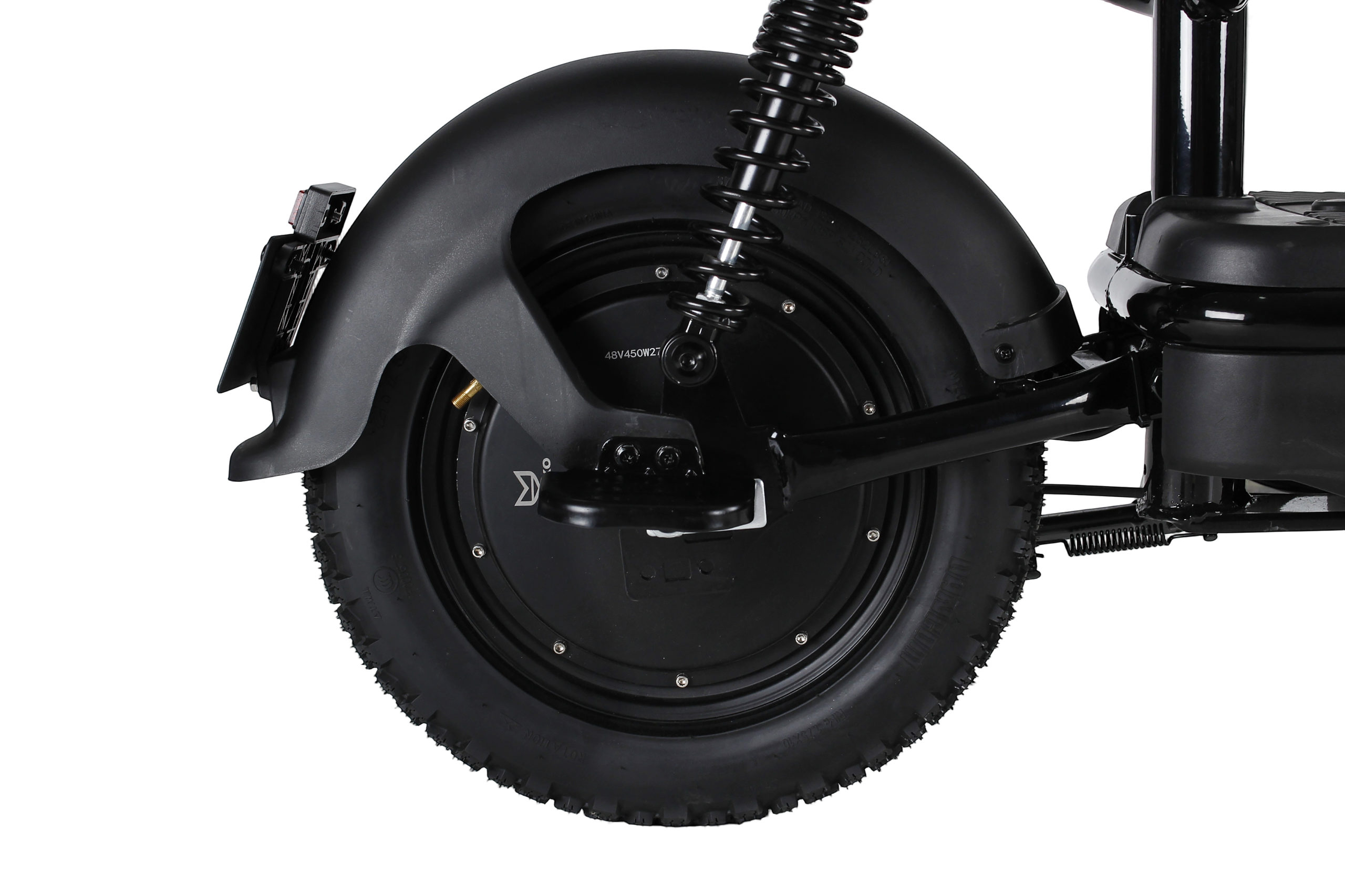 Всесезонные брендовые покрышки размером 27.5×10 дюймов гарантируют уверенное сцепление с дорогой как в сухую, так и в дождливую погоду. Передняя и задняя амортизация работают в паре, эффективно сглаживая неровности и снижая утомляемость при длительных поездках. Вес нетто равен 46.5 кг, что обеспечивает устойчивость на дороге и приемлемую транспортабельность.