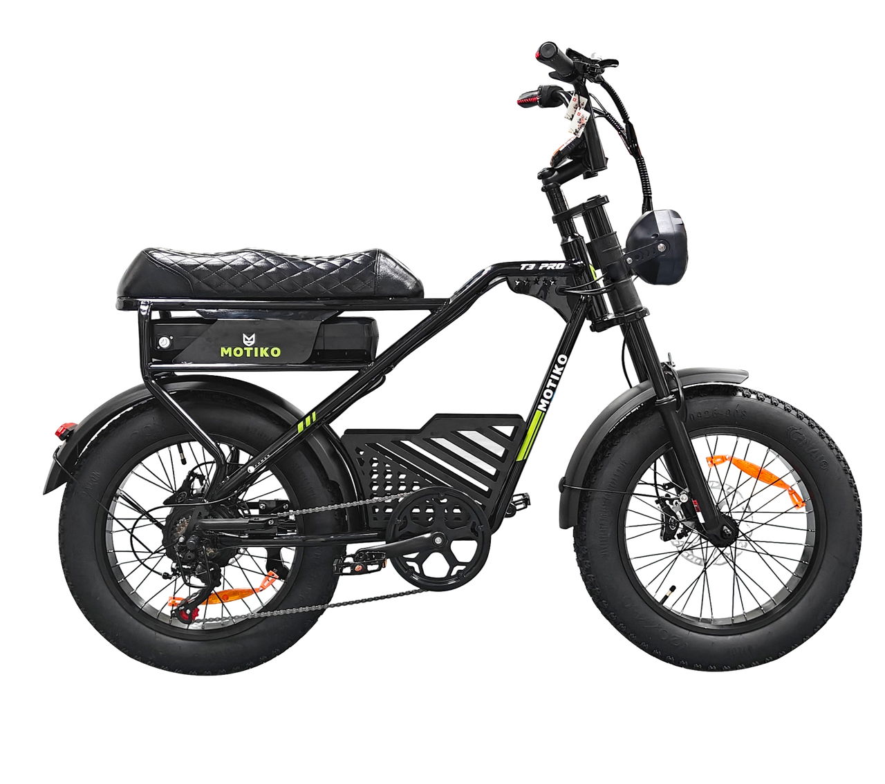 Транспортировочная упаковка имеет размеры 1350×310×870 мм, вес брутто составляет 46.54 кг. Шины 20×4.0 дюйма остаются универсальным решением: они одинаково эффективны на асфальте, лесных тропах, пляжном песке и укатанном снегу. MOTIKO MT3 Pro не требует доработок — это готовый инструмент для активного отдыха, рассчитанный на эксплуатацию в самых разных условиях.