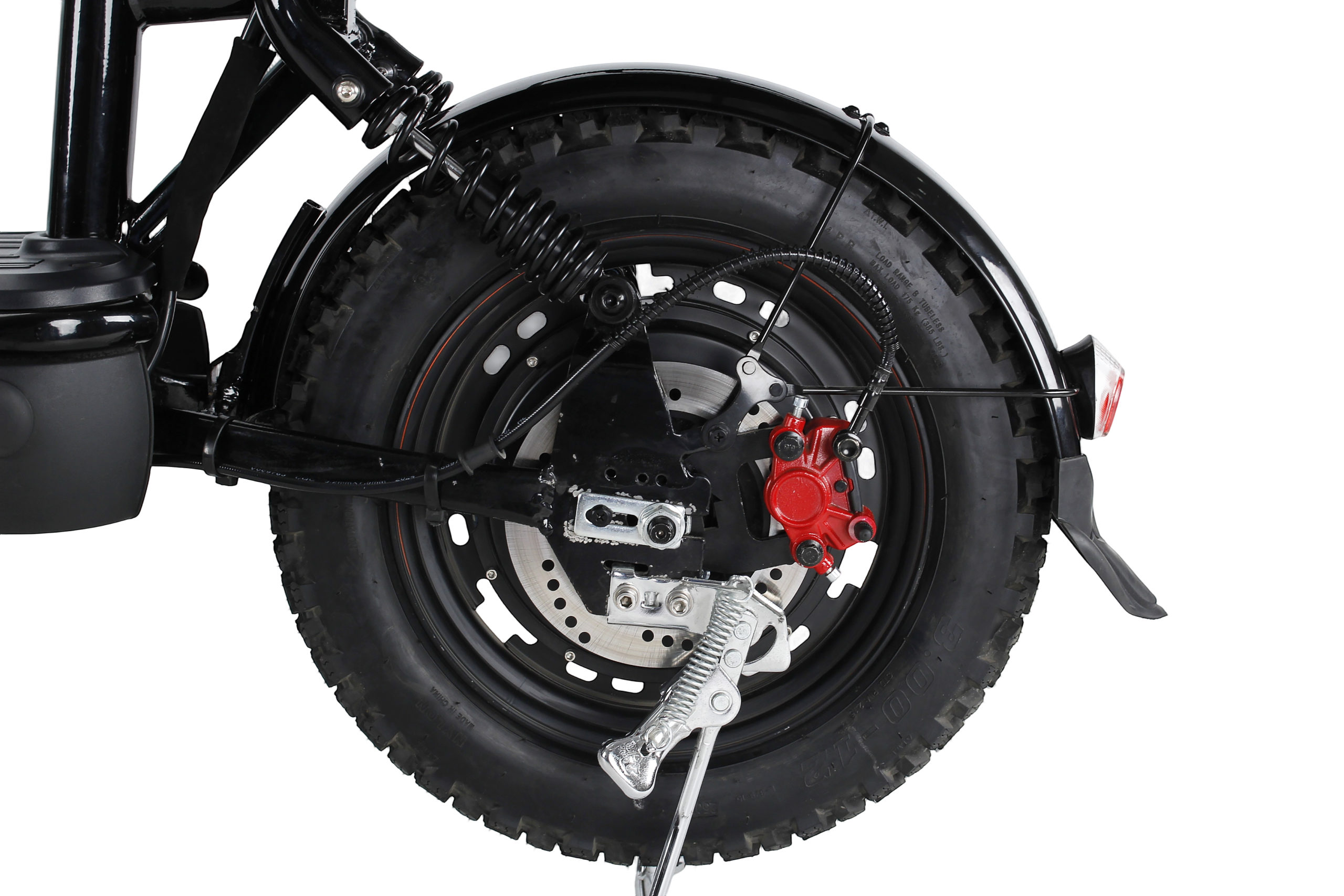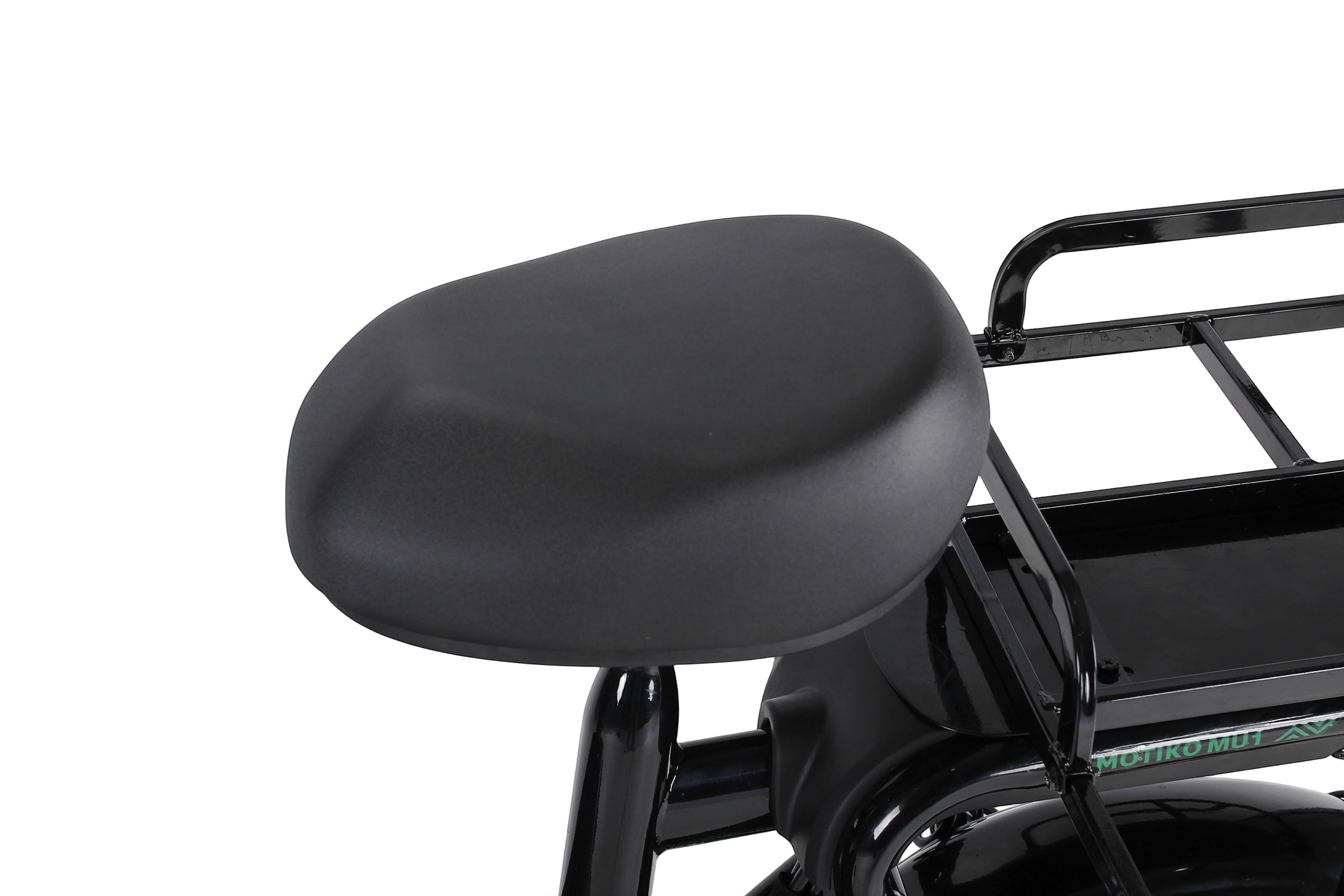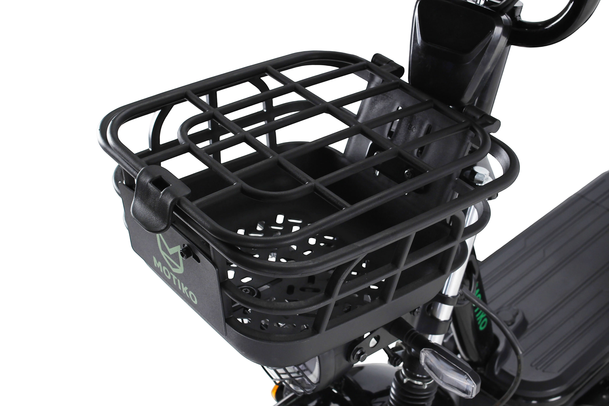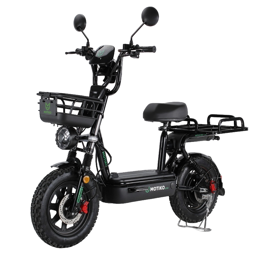Электровелосипед MOTIKO MU1 построен на 16-дюймовых колесах, которые обеспечивают оптимальный баланс между маневренностью и курсовой устойчивостью. Увеличенный диаметр колес способствует лучшему накату и более комфортному преодолению дорожных неровностей по сравнению с компактными моделями. Максимальная нагрузка составляет 150 кг, что позволяет перевозить водителя с пассажиром или значительный объем груза.