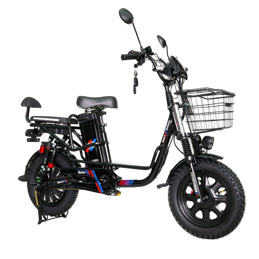 Корзина на переднем колесе добавляет практичности, позволяя удобно перевозить покупки или личные вещи. Фары и ходовые огни обеспечивают отличную видимость в темное время суток, что значительно повышает безопасность во время поездок. Бортовой компьютер предоставляет важную информацию о скорости, уровне заряда и других параметрах, что делает каждую поездку более информативной и комфортной.