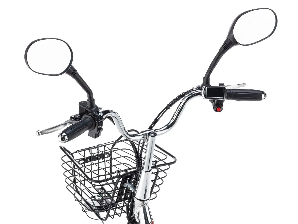 E-NOT Express Big 60v 20ah K - простой и надёжный электровелосипед для города и загородной местности. Он отлично подходит для передвижения в городской местности или, например, на даче. Среди аналогов у данной модели наиболее лёгкий вес - 27 кг. Рама сварена из прочного алюминия, а 20 дюймовые колёса выполнены на литых дисках. Электровелосипед Е-Нот Экспресс Биг рассчитан на нагрузки до 140 кг. Металлическая корзинка на руле сделана для перевозки небольших вещей, таких как рюкзак, бутылки с водой или пакеты с продуктами, если пользователь едет на нем в магазин.