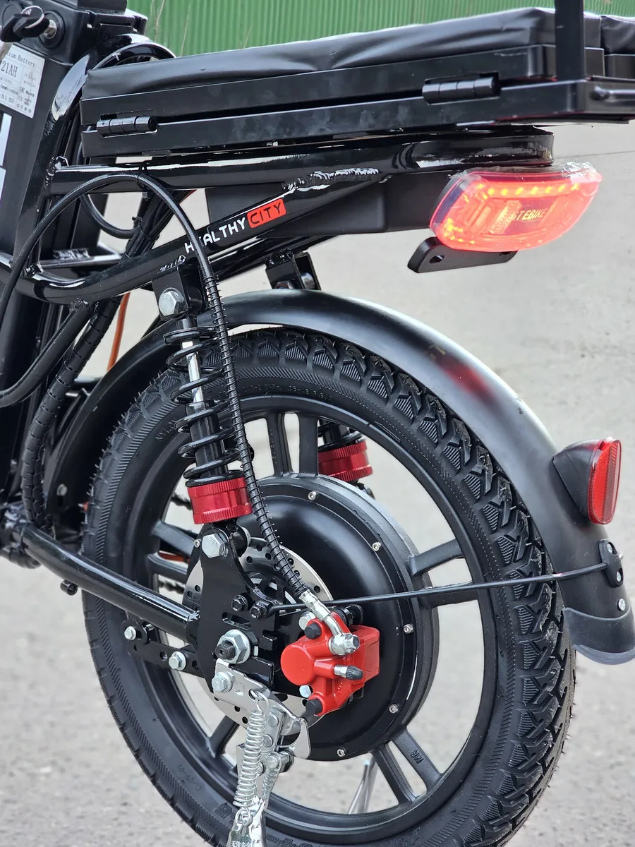 Двигатель мощностью 350 Вт 60V позволяет развивать скорость до 35км/ч. и отлично тянуть в горку.