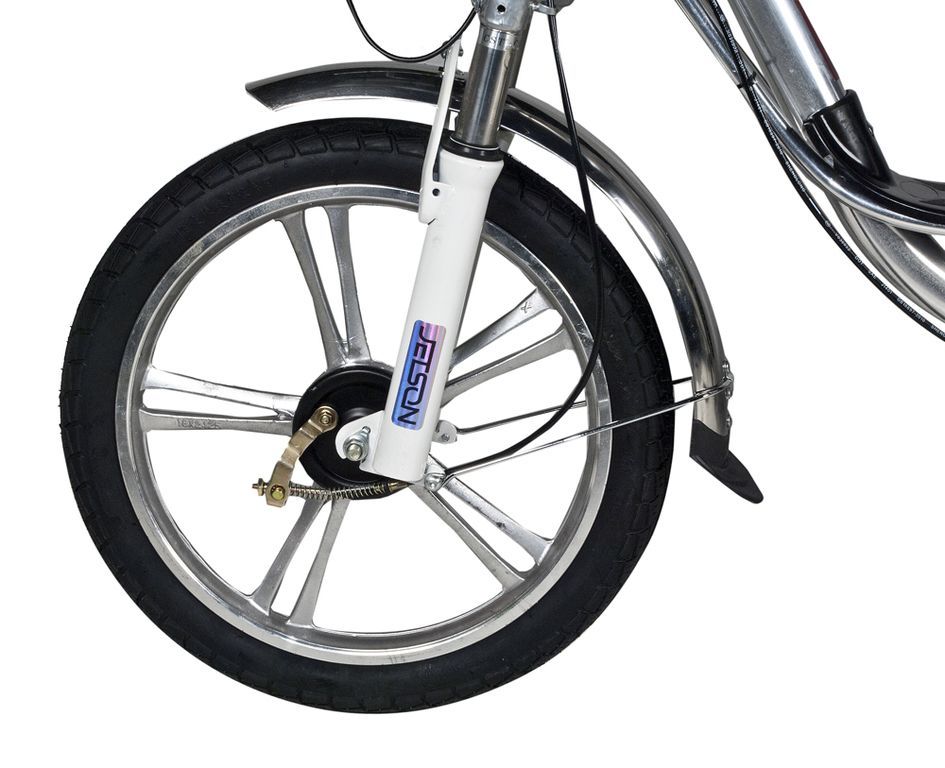- Спереди установлена вилка, которая сглаживает неровности и позволяет наслаждаться комфортной плавной ездой. А также продлевает срок службы электровелосипеда, снижая воздействия от вибрации и ударов.