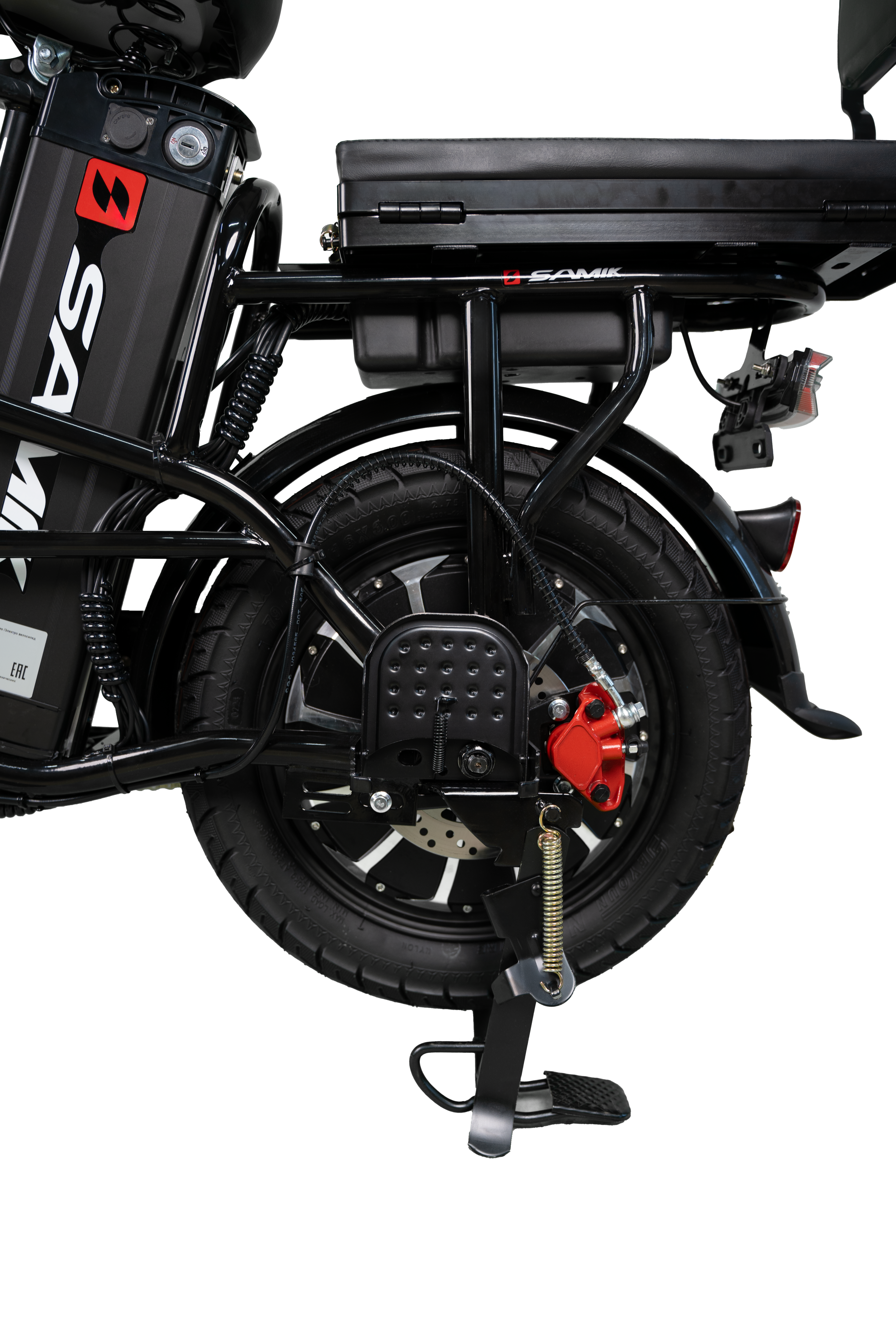 Samik V3 спроектирован с учетом комфорта пользователя. Максимальная нагрузка в 150 кг позволяет использовать этот электровелосипед не только для одного человека, но и для перевозки различных грузов. Дисковая тормозная система обеспечивает надежное торможение, что особенно важно для безопасности на дороге, особенно при движении на высокой скорости.
