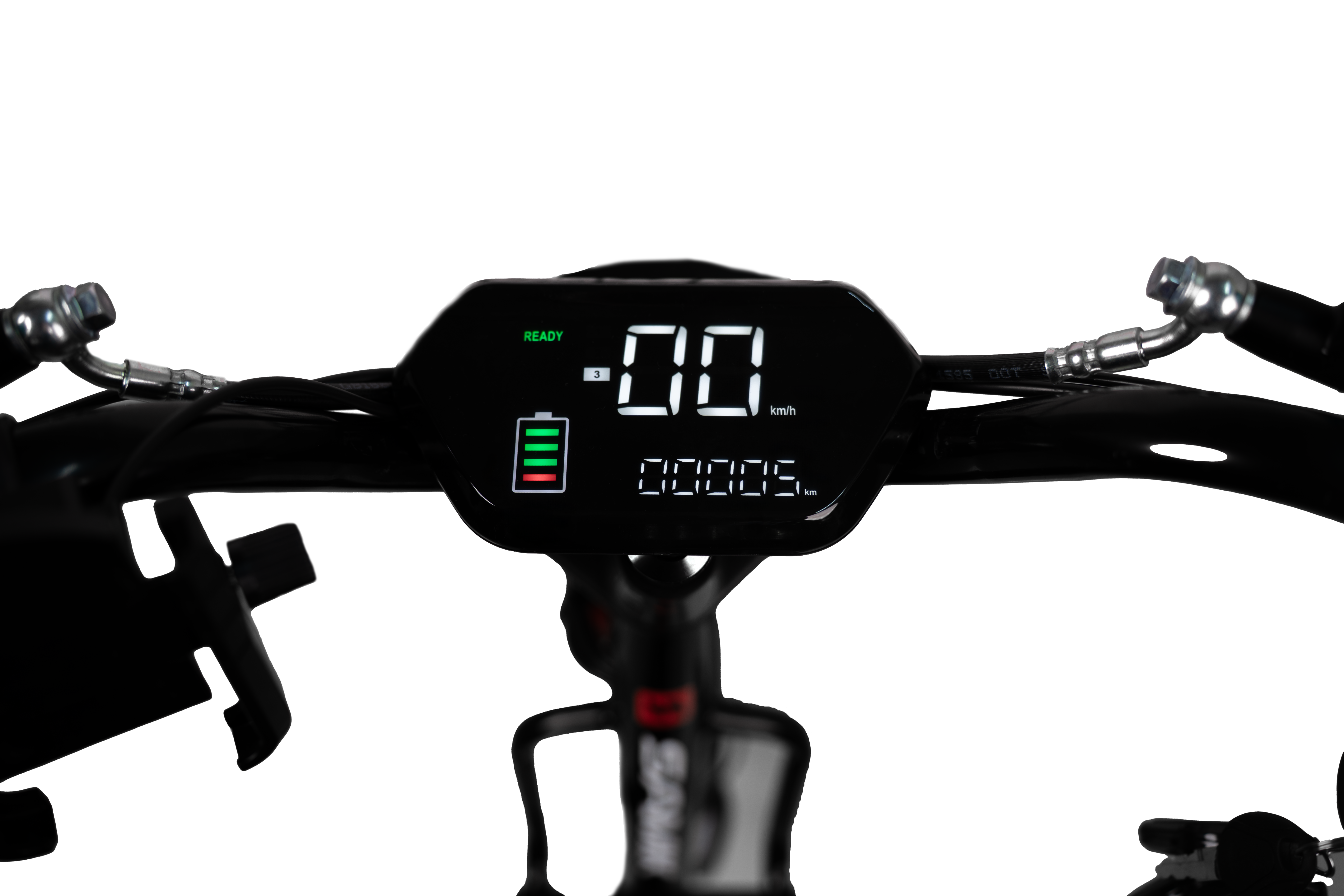 Электровелосипед Samik V3 оборудован современными фарами и ходовыми огнями, что обеспечивает отличную видимость в темное время суток и повышает безопасность. Бортовой компьютер на руле позволяет отслеживать скорость, уровень заряда аккумулятора и другие важные параметры, что делает управление велосипедом более удобным и информативным.