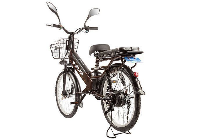 - Внешние данные электровелосипеда свидетельствуют об основательности и практичности. В основе конструкции велогибрида на 24-дюймовых колесах - надежная стальная рама, в нижней трубе которой расположена съемная 48-вольтная аккумуляторная батарея емкостью 10Ah. E-Alfa GL комплектуется мощным 500-ваттным hub-мотором, установленным в ступице заднего колеса; контроллер электродвигателя располагается на стойке подседельной трубы.
