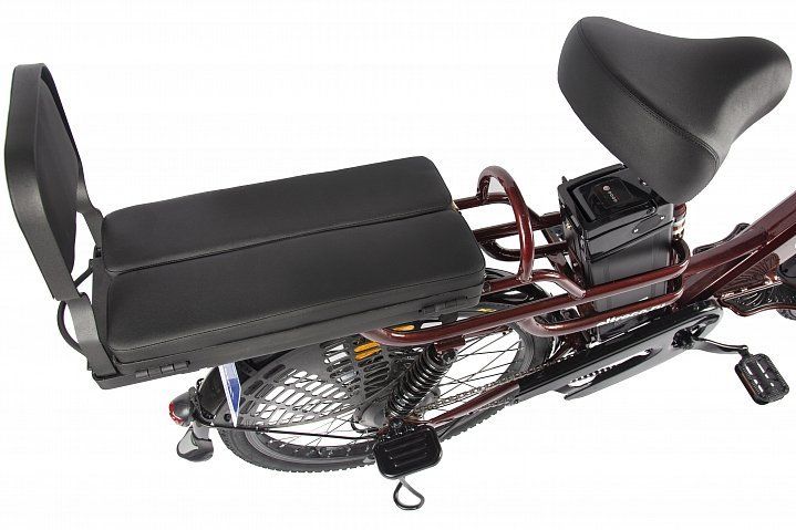 - мягкое сиденье на багажнике с откидывающейся спинкой и трансформирующейся конструкцией. Вы также можете установить на багажник детское кресло или закрепить груз, если ваш общий вес не будет превышать 130 кг.