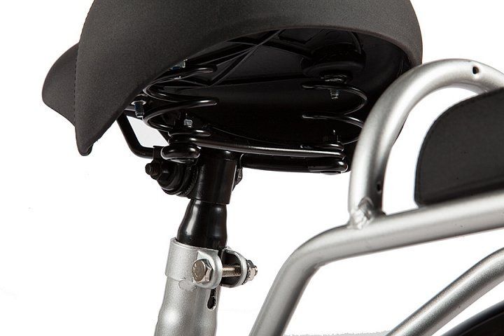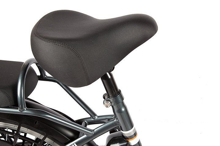 - Удобное сидение багажника позволяет установить на него детское кресло и отправиться в путешествие в компании с совсем юными велолюбителями. При этом пластиковая защита на заднем колесе поможет избежать попадания посторонних предметов в спицы.