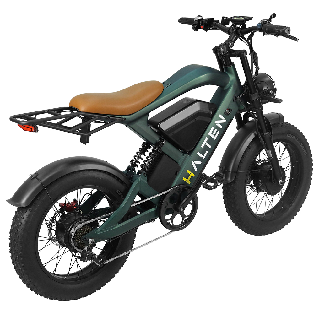 HALTEN Energy оборудован колесами диаметром 20×4 дюйма, которые обеспечивают отличное сцепление с дорогой и комфорт при движении. Профессиональная вело/мотовилка спереди и задняя маятниковая подвеска гарантируют плавный ход, минимизируя удары от неровностей дороги. Это особенно важно для длительных поездок, когда комфорт становится приоритетом.