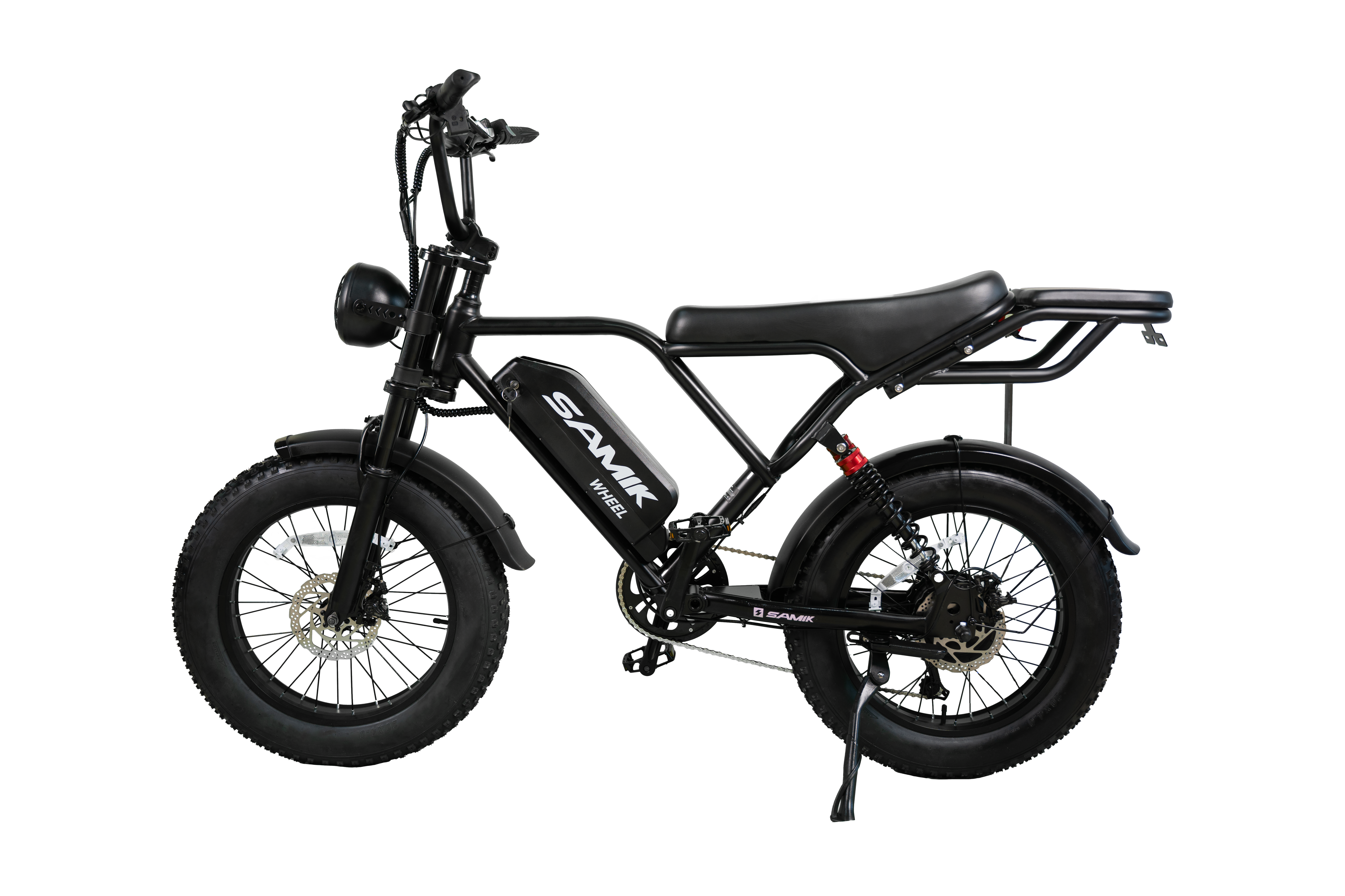 Электровелосипед Samik BK 20 оборудован современными фарами и ходовыми огнями, что обеспечивает отличную видимость в темное время суток и повышает безопасность. Бортовой компьютер на руле позволяет отслеживать скорость, уровень заряда аккумулятора и другие важные параметры, что делает управление велосипедом более удобным и информативным.
