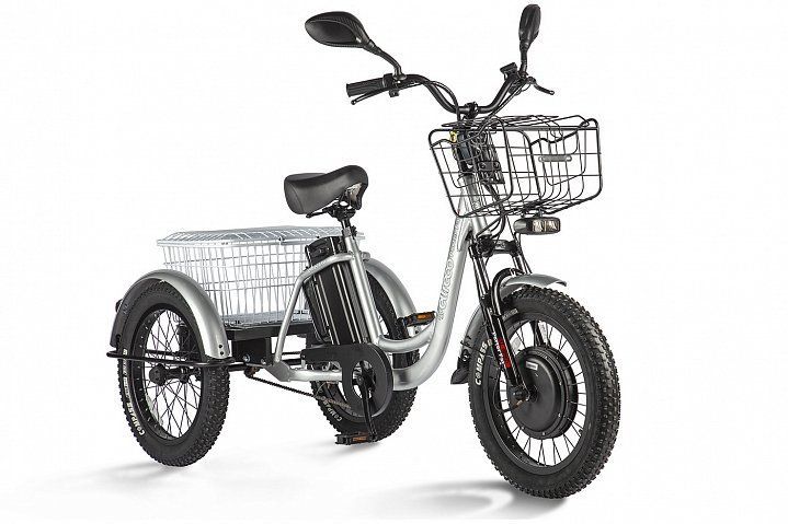 Этот трехколесный грузовой электровелосипед, оснащенный электродвигателем мощностью 500W прекрасно подойдёт для эксплуатации на даче, для решения бытовых задач: поездок в магазин, помощи на участке, комфортных велопрогулок и перевозки небольших грузов.