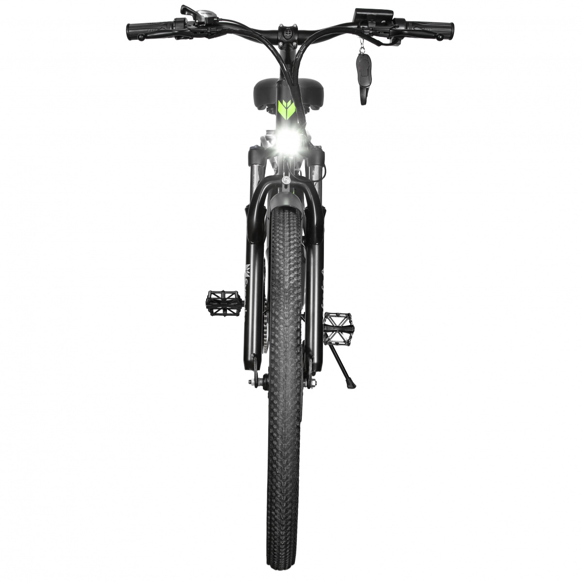 Модель оборудована яркой передней фарой с регулируемым углом наклона, что улучшает видимость в темное время суток. Надежные механические тормоза обеспечивают четкую остановку в любых ситуациях, а задний стоп-сигнал делает велосипедиста заметным на дороге. Прочная алюминиевая рама гарантирует долговечность конструкции.
