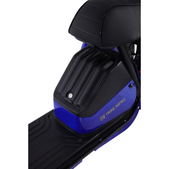 CityCoco Trike GT-X6 также оснащен фарами и ходовыми огнями, что значительно увеличивает видимость в темное время суток и обеспечивает дополнительную безопасность. Наличие корзины делает его удобным для перевозки вещей, что особенно актуально для городских поездок.