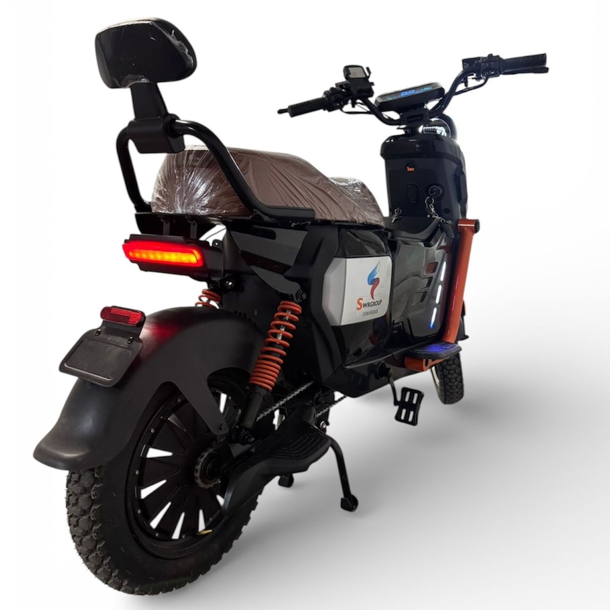 Управляемость и комфорт на скоростях около 60 км/ч обеспечиваются не только тормозами, но и общей архитектурой. Усиленная стальная рама гасит вибрации, а предполагаемая подвеска (характерная для данного класса) и колеса увеличенного диаметра работают над тем, чтобы неровности дороги не превращались в проблему для водителя. Задний привод делает конструкцию ремонтопригодной и дает характерное «подталкивающее» ощущение при разгоне. Этот электровелосипед для тех, кто ценит чувство контроля.