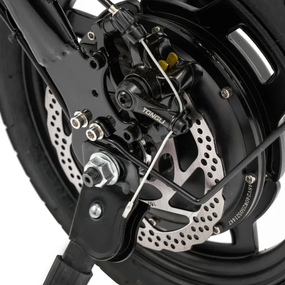 Колеса диаметром 14 дюймов обеспечивают отличную маневренность, что особенно важно на городских улицах. Дисковая механическая тормозная система гарантирует надежное торможение в любых условиях, повышая безопасность во время движения на высоких скоростях и по сложным маршрутам.
