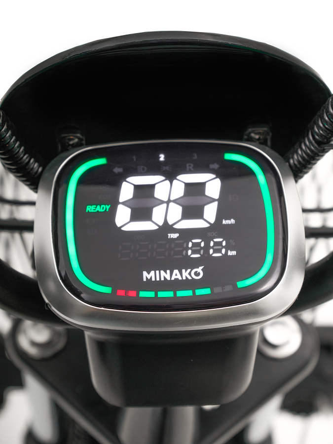 Minako Monster PRO оборудован гидравлическими тормозами спереди и сзади, что обеспечивает надежное торможение в любых условиях. Задний привод и всесезонные шины размером 16x3 обеспечивают отличное сцепление с дорогой, что делает поездки более безопасными и комфортными. Дополнительные функции, такие как сигнализация и поворотники, повышают уровень безопасности и удобства при движении по городу.
