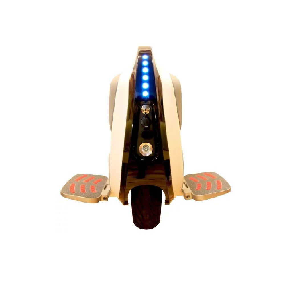 - Спереди моноколеса расположена небольшая панель, на которой компактно разместились порт для зарядки, кнопка включения и USB-разъем.