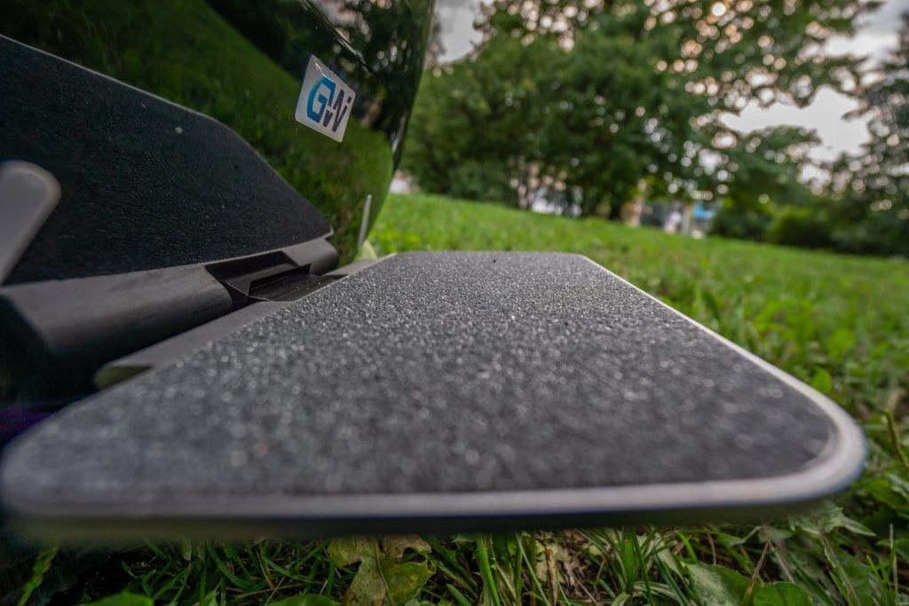 - Подушки идут в комплекте, их нужно приклеить самостоятельно. Места на корпусе для этого достаточно, их можно приклеить высоко, почти под самую ручку. Это даёт возможность лучше контролировать моноколесо.