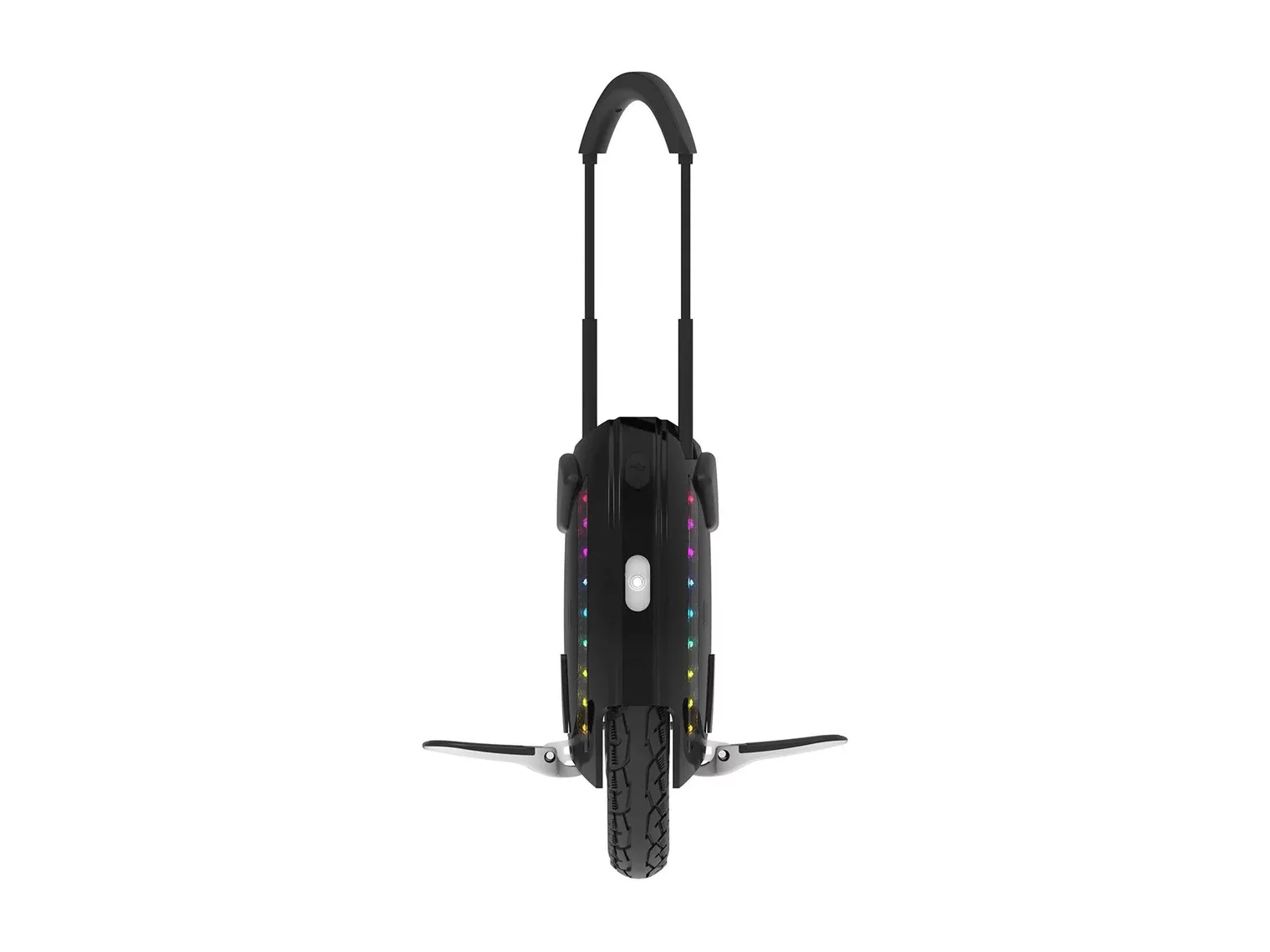 Устройство выдерживает нагрузку до 120 килограмм, имеет прочную алюминиевую раму и оснащено светодиодной фарой для безопасной езды в темное время суток. Встроенный Bluetooth модуль дает возможность управлять функциями колеса через мобильное приложение, а система рекуперации энергии эк