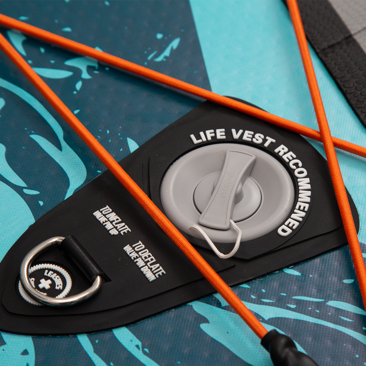 Толщина доски 15 сантиметров (6 дюймов) является стандартной для надувных сапбордов и обеспечивает достаточный запас плавучести. Увеличенная ширина и длина позволяют равномерно распределять нагрузку по поверхности доски, сохраняя устойчивость даже при смещении центра тяжести. Форма корпуса оптимизирована для движения как по прямой, так и для выполнения поворотов среднего радиуса.