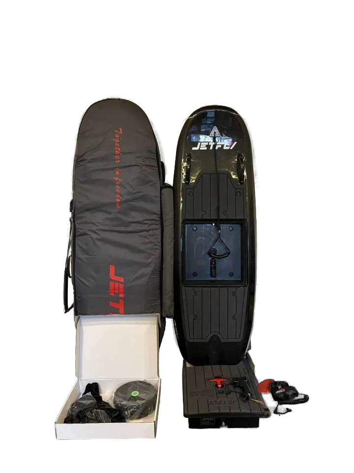 Стильный карбоновый корпус не только привлекает внимание, но и обеспечивает легкость и прочность, что делает JetFly JF02 не только красивым, но и практичным выбором для активного отдыха на воде.