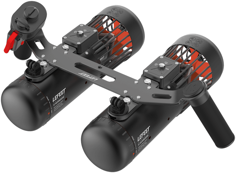 Для опытных дайвером Lefeet предлагает легкое решение, два подводных скутера Лифит легко соединяются в единое устройство, при этом удоство управления и маневрирования остается на высочайшем уровне. Максимальная скорость сдвоенного скутера увеличится до 2.3 м/с ( 8.2 км/ч)