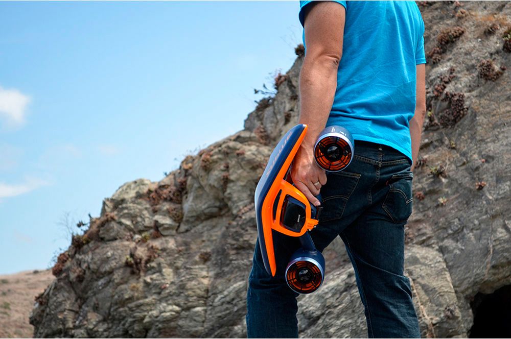 Нажмите и удерживайте кнопки по бокам для старта, отпустите любую для остановки. Скутер легко вращается на 360° под водой.